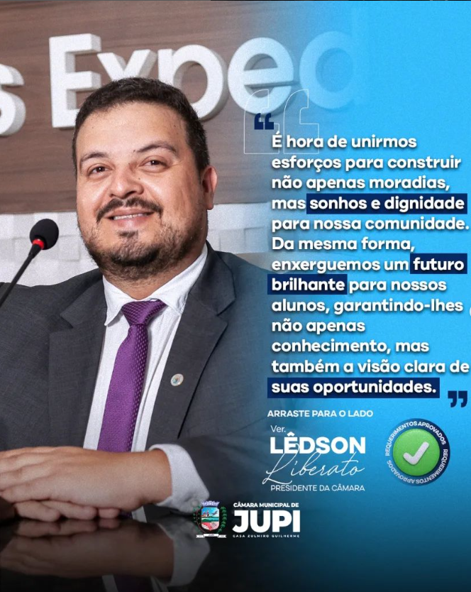 🤝💬 Participação Cidadã: Com Lêdson Liberato à frente, a Câmara de Jupi está em ação, conectando sonhos e necessidades da nossa comunidade. Unidos, construiremos lares e ampliaremos horizontes visuais, transformando cada desafio em oportunidade. Vamos avançar,