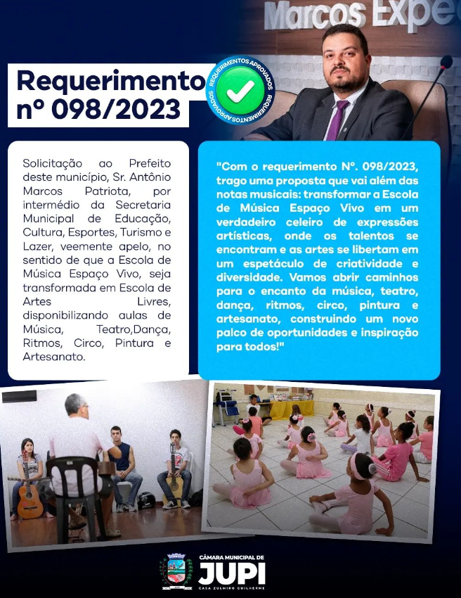 🗒️👏 Ele está solicitando ao Prefeito Antônio Marcos Patriota, através da Secretaria Municipal de Educação, Cultura, Esportes, Turismo e Lazer, uma transformação incrível na Escola de Música Espaço Vivo!
