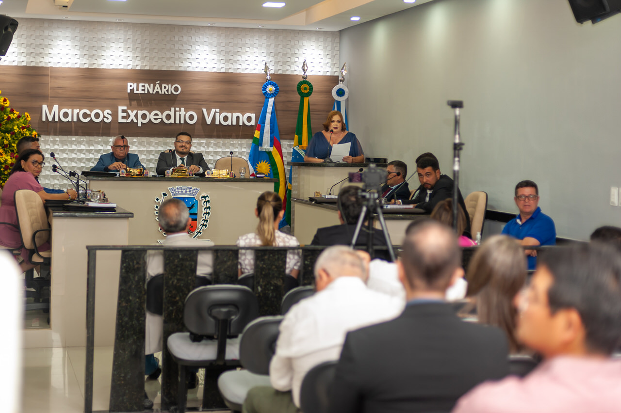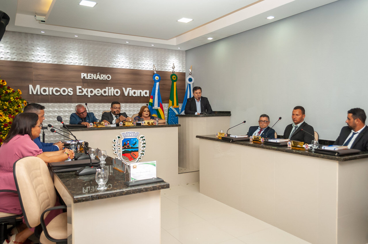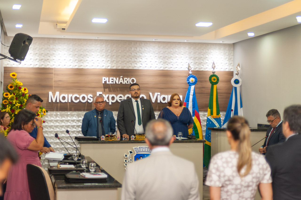 A Casa Legislativa Zulmiro Gilherme realizou na tarde desta quinta-feira (02/02), a sessão solene de abertura do biênio 2023 a 2024. O Presidente desta Casa de Leis, Vereador Lêdson Lins deu início à sessão com apresentação do hino nacional e do município.