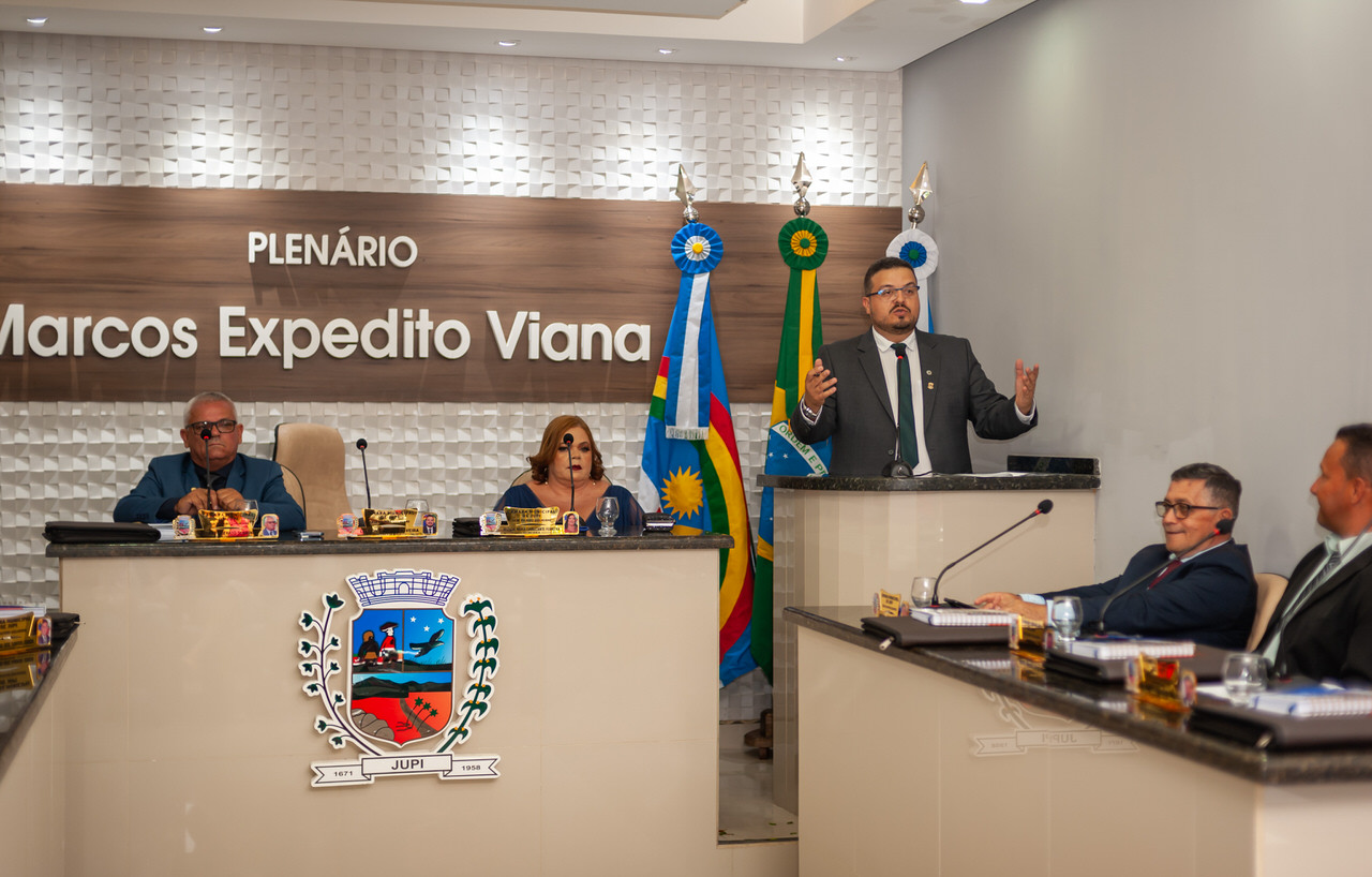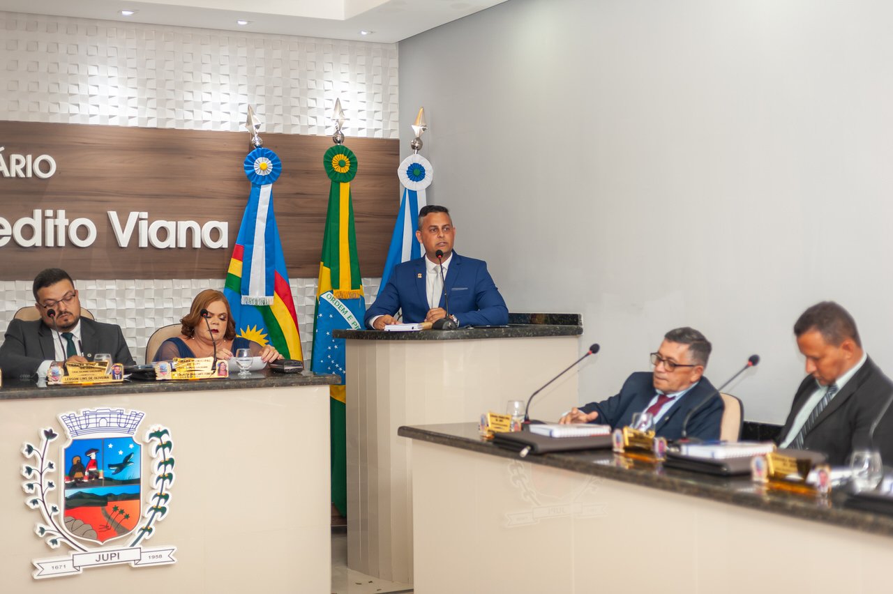 Durante sua fala, o Presidente Lêdson falou da honra de poder voltar a presidência desta Casa, agradeceu a toda equipe (servidores e prestadores de serviço) pelo apoio e comprometimento de sempre, homenageou seu tio o ex-vereador Reginaldo Liberato, seu pai o ex-vereador Genivaldo Liberato (Sukita), falou da importância da sua base familiar, especialmente sua mãe, na formação do seu caráter. Ressaltou ainda, que a Câmara de Jupi sempre foi e continuará sendo palco das grandes decisões, sempre aberta ao povo de Jupi.